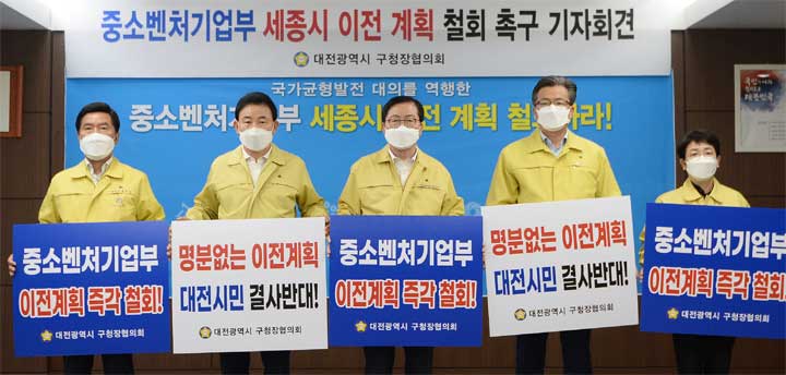 대전지역 5개 구청장, 기자회견 열고 세종 이전 철회 촉구