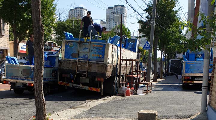 고 씨를 비롯한 방역팀은 2인1조 3교대 체재로 소독은 24시간 이뤄진다. 이날 오후 12시부터는 공무원 1명이 투입돼 3인1조를 유지하게 된다. 팀원들은 “점심시간에는 라면을 끓여놓고도 차량이 들어오면 뛰어나간다”며 “하지만 사태가 심각해 불편함도 모르고 일한다”고 입을 모았다.