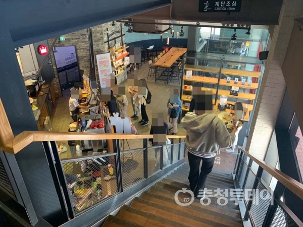 인근 시내 커피숍 등도 상황은 마찬가지였다. 테이크 아웃을 위해 다들 밀접하게 줄을 선채 대기하고 있었다. 대부분 마스크도 내렸다.