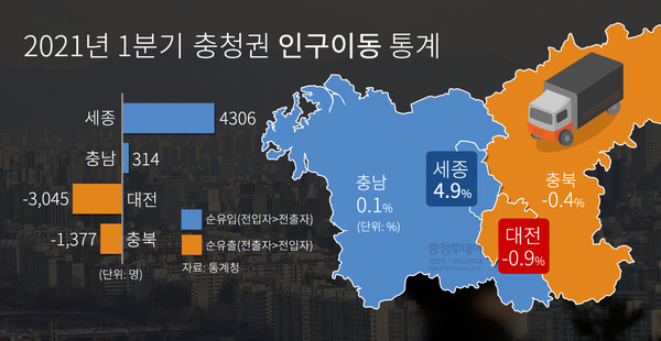 - 2021.04.28 수도권·세종시 인구 유입… 대전·충남·충북 충청권 인구 유출 지속